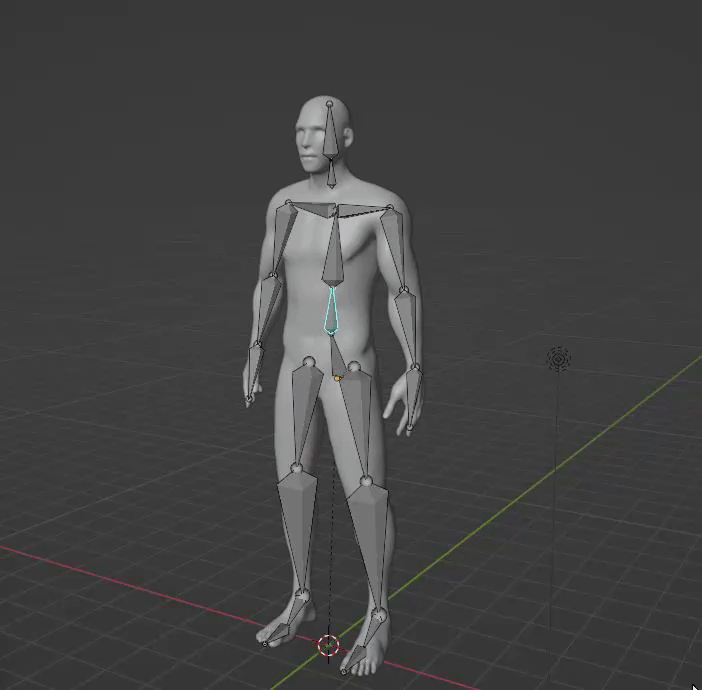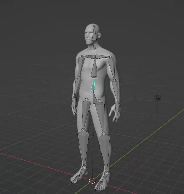Then I rigged it with a basic skeleton. Pelvis, spine, collarbone, neck, head, biceps, forearms, hands, thighs, calves, ankles and feet.